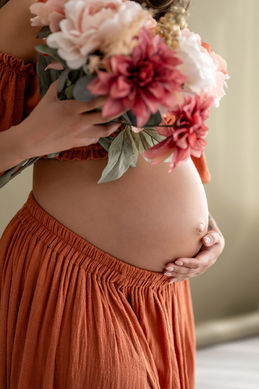 For clients looking for a softer seasonal look, we also offer our spring flower sessions featuring a light floral setting ideal for maternity portraits.
